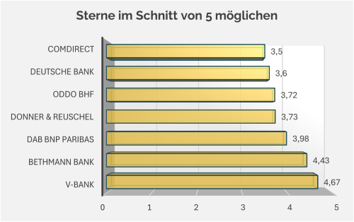 Folgende Sternebewertung haben die Depotbanken durchschnittlich erhalten: